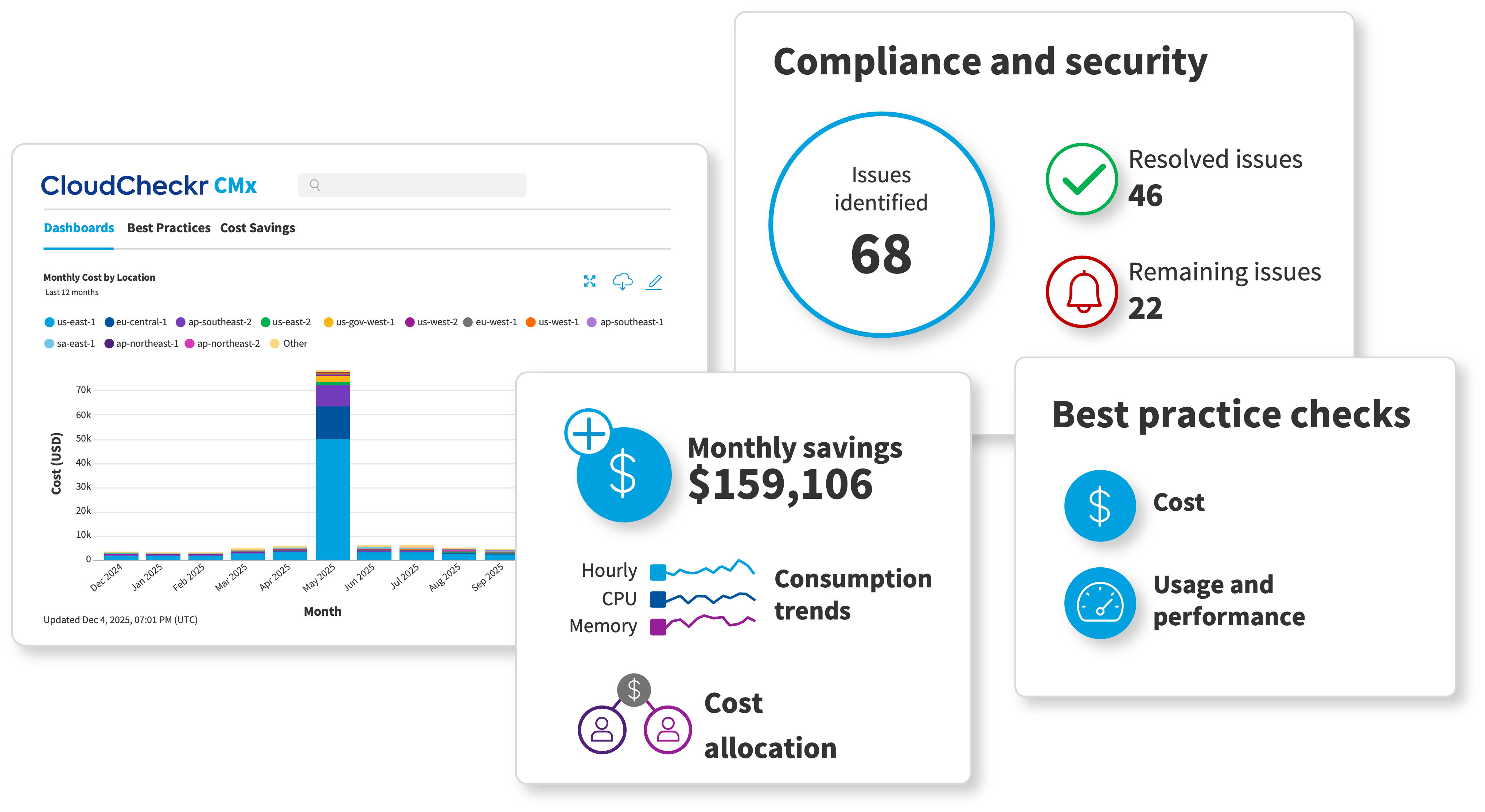 CloudCheckr enables MSPs and enterprises to better manage and reduce cloud costs, optimize resources and gain operational efficiencies, improve governance, and strengthen security and compliance. Now part of Flexera, CloudCheckr partners and customers can gain even more cloud insights and optimization through Flexera One FinOps and Cloud Cost Optimization.